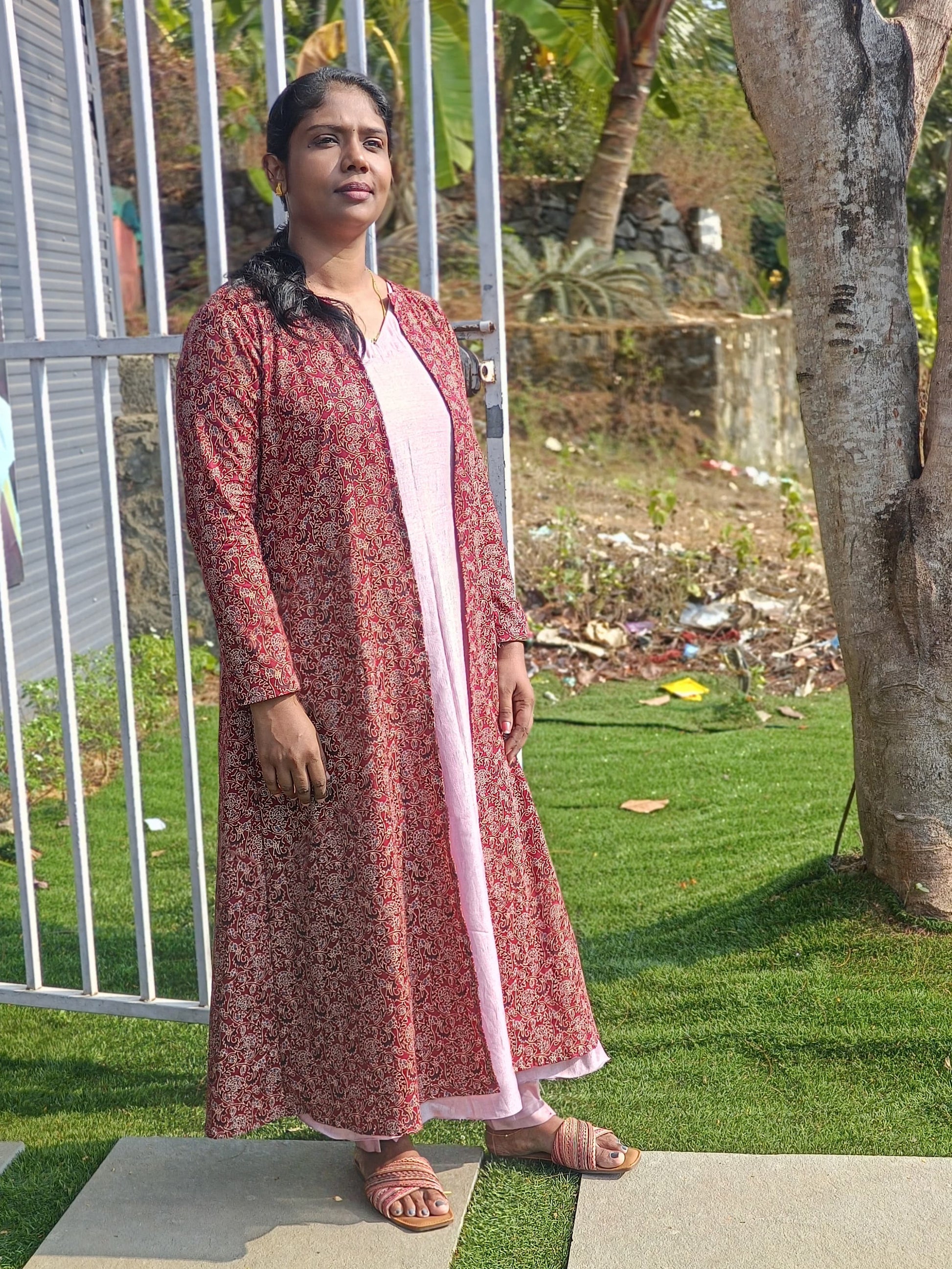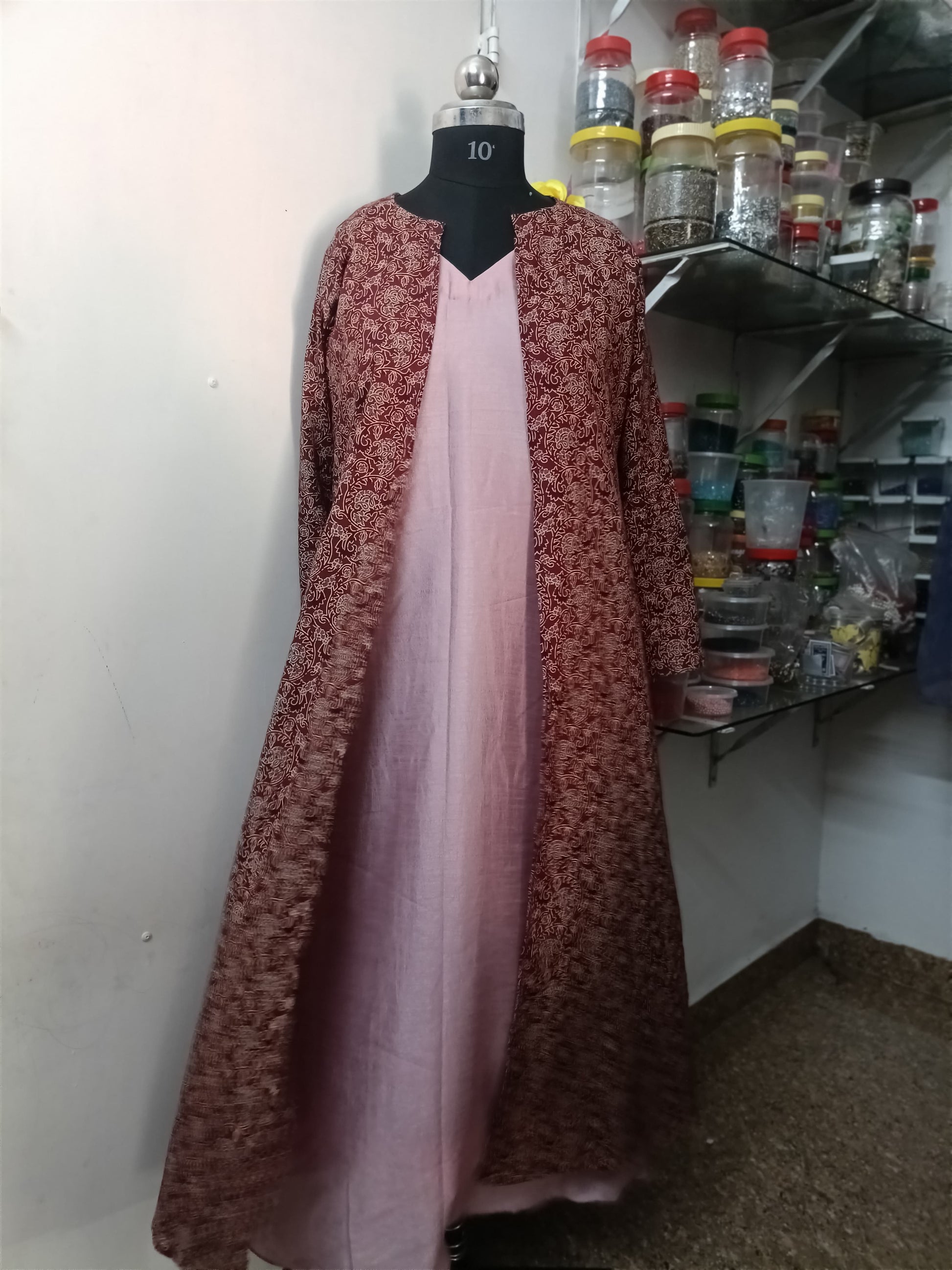 Material :Bhadri silk aline and Cotton Ajrak coat.