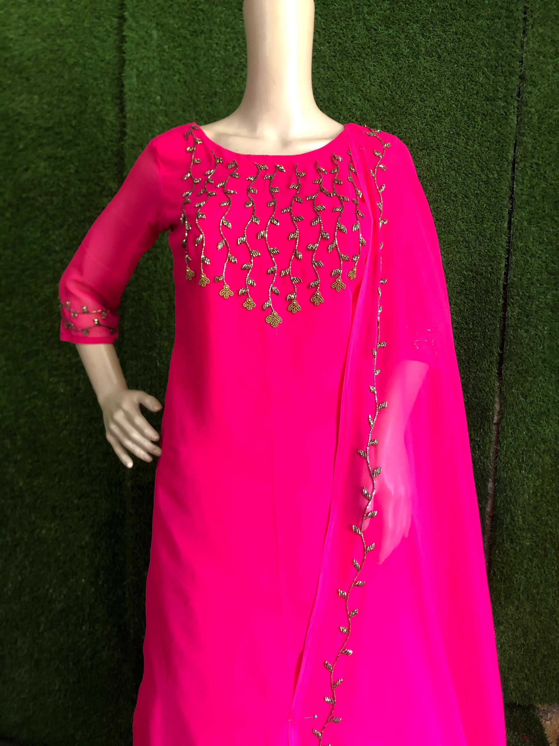 Material : Georgette top, dupatta, Crape bottom.