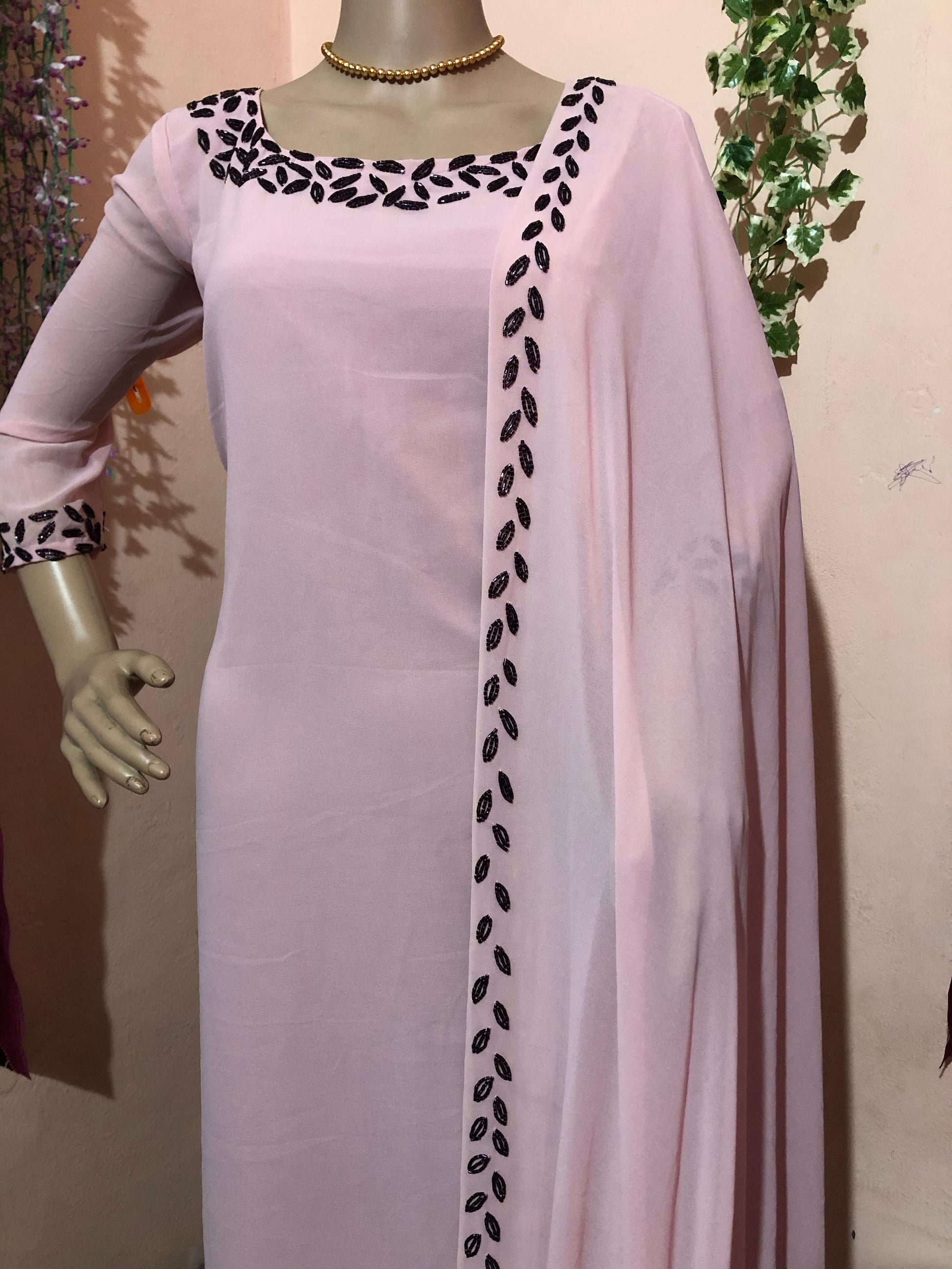 Material : Georgette top, dupatta, Crape bottom.