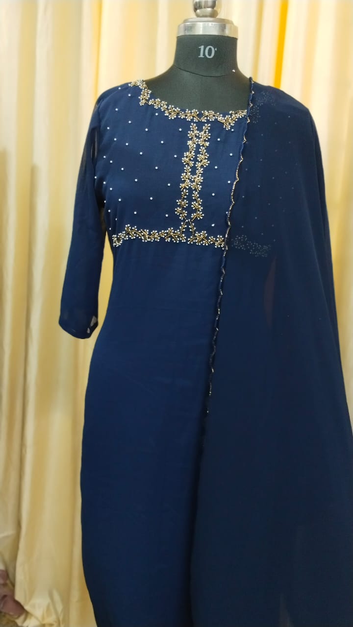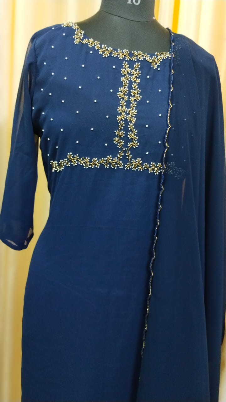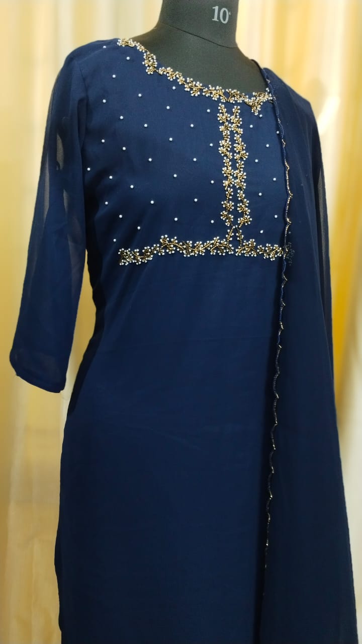 Material : Georgette top, Shantoon bottom and Georgette dupatta.