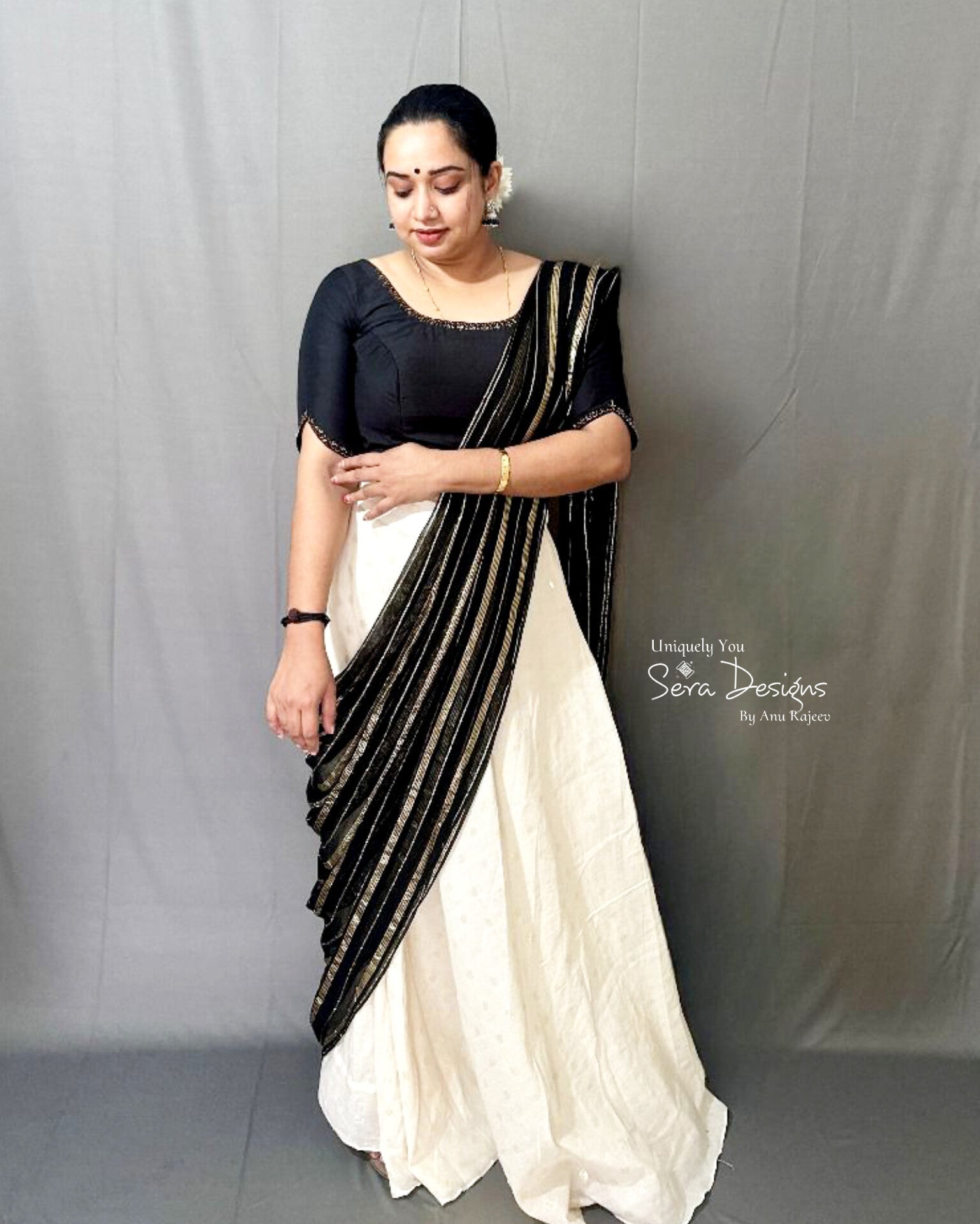 Material : Dyeable cotton skirt, Slub silk blouse and viscous georgette dupatta.