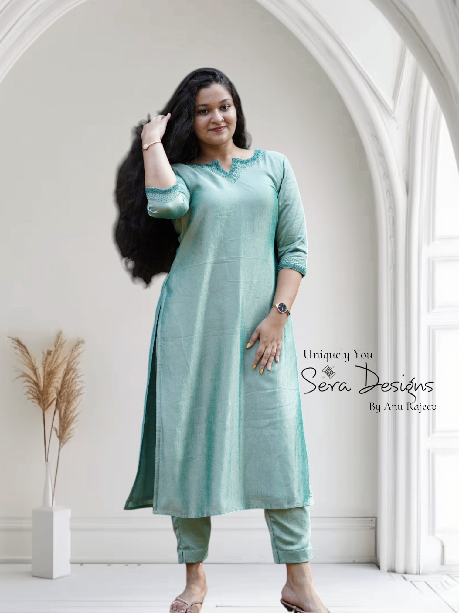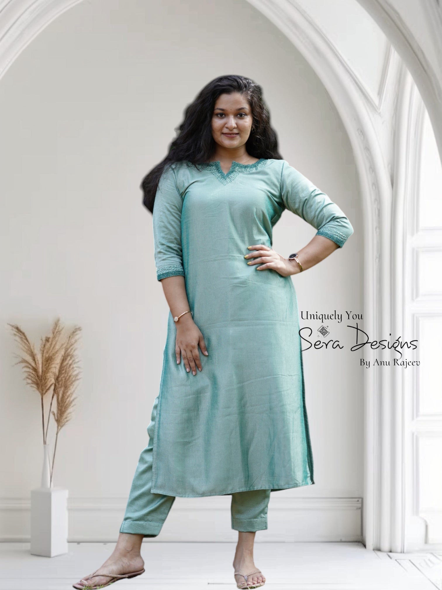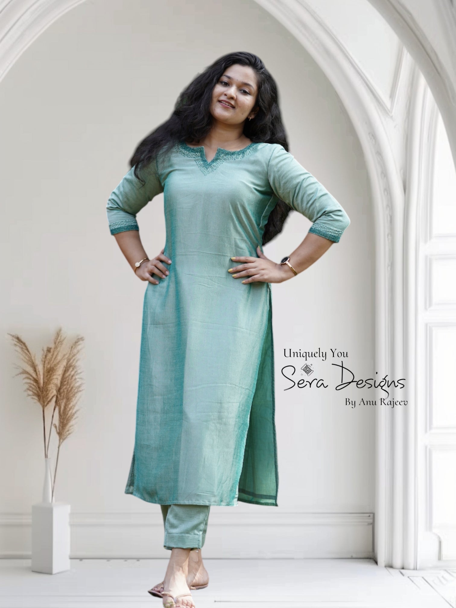 Pattern : Aline slited kurti , loose pencil bottom
